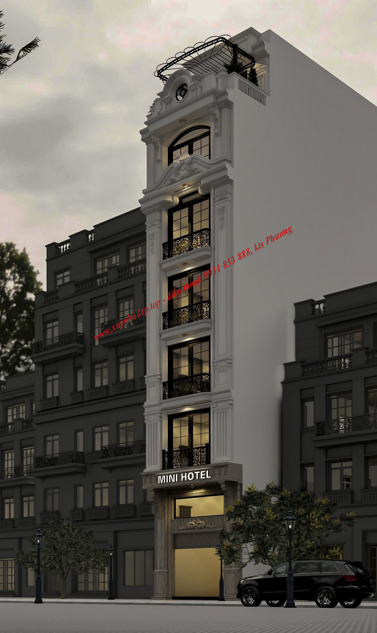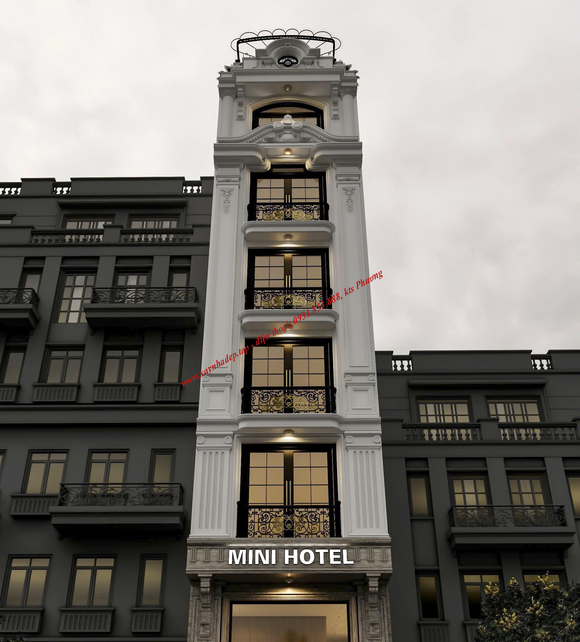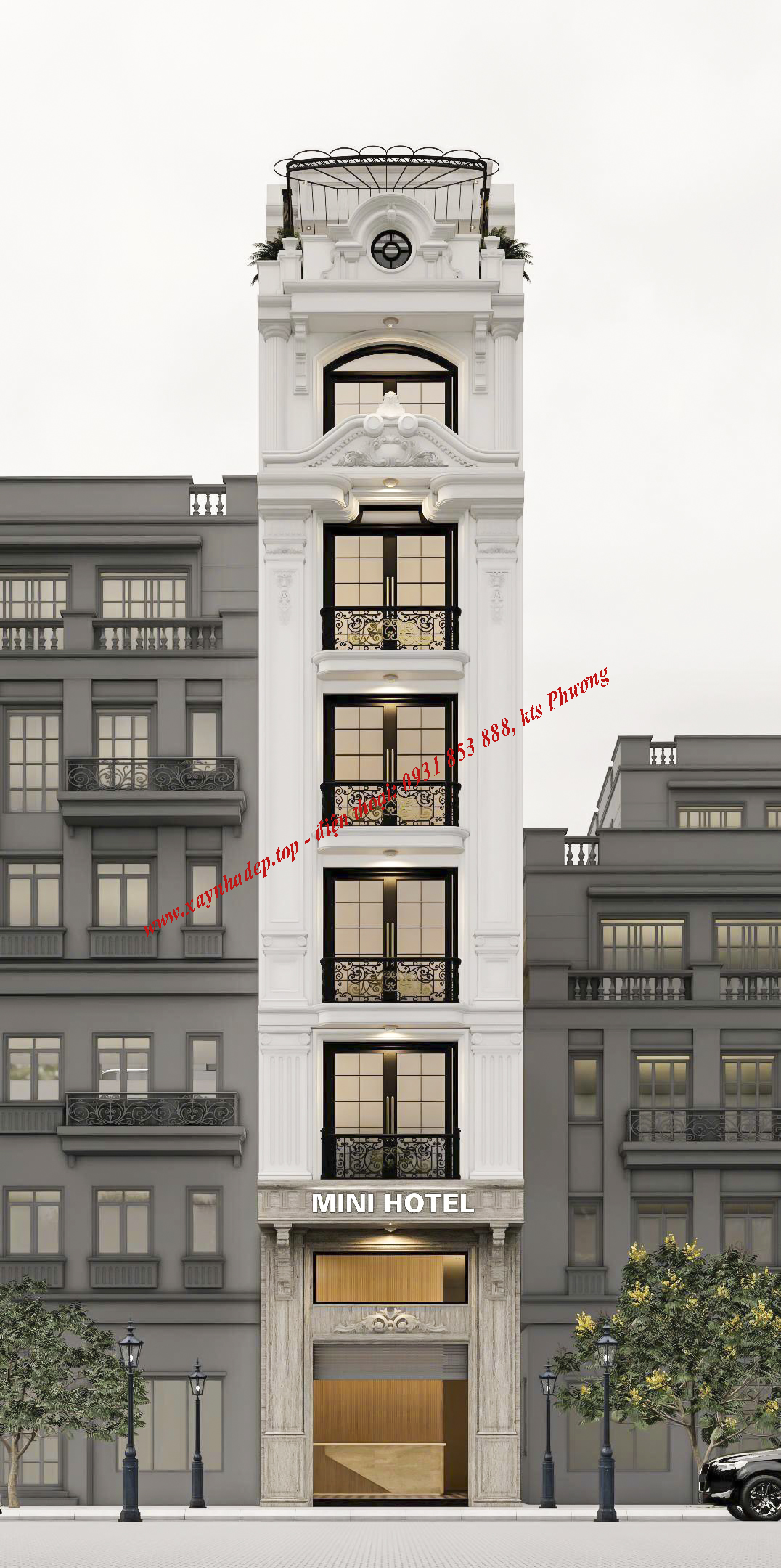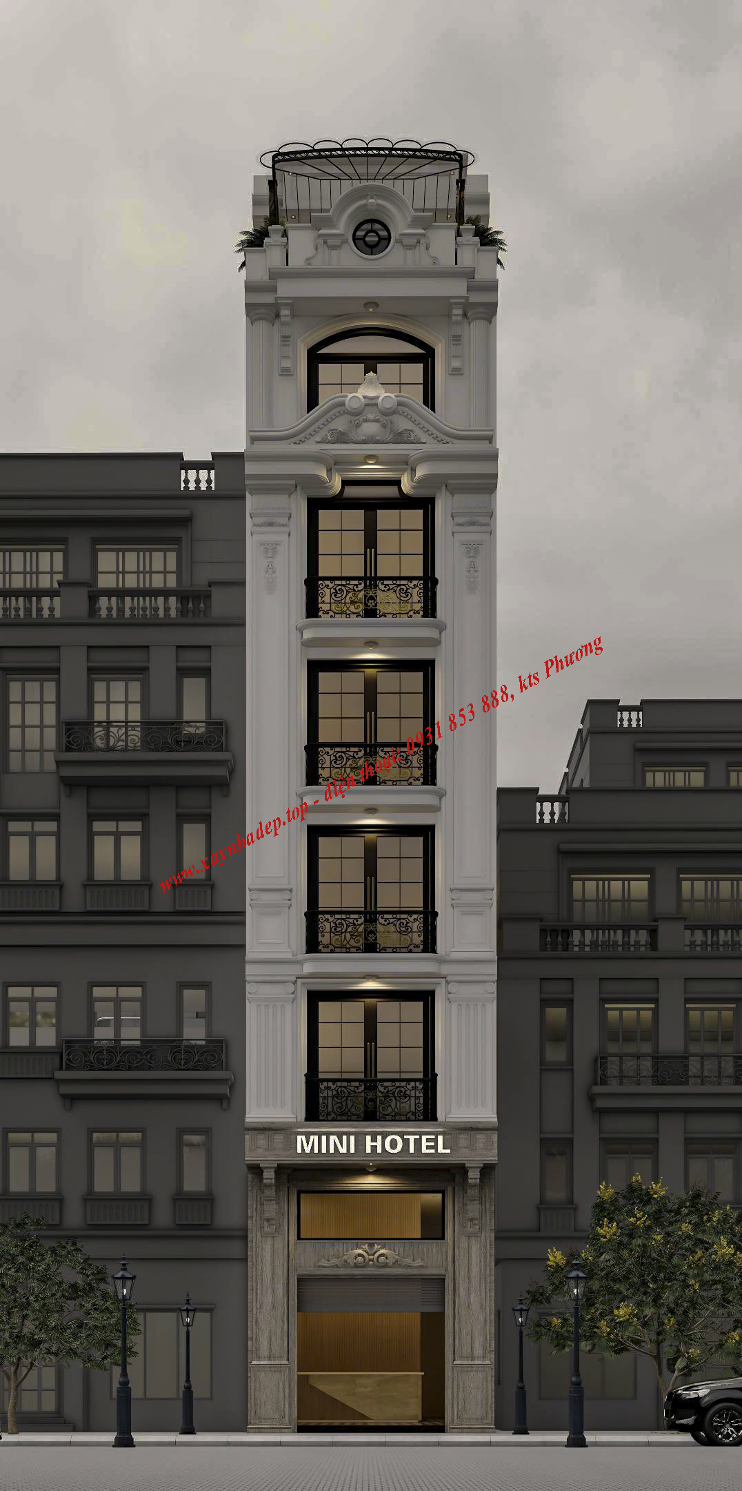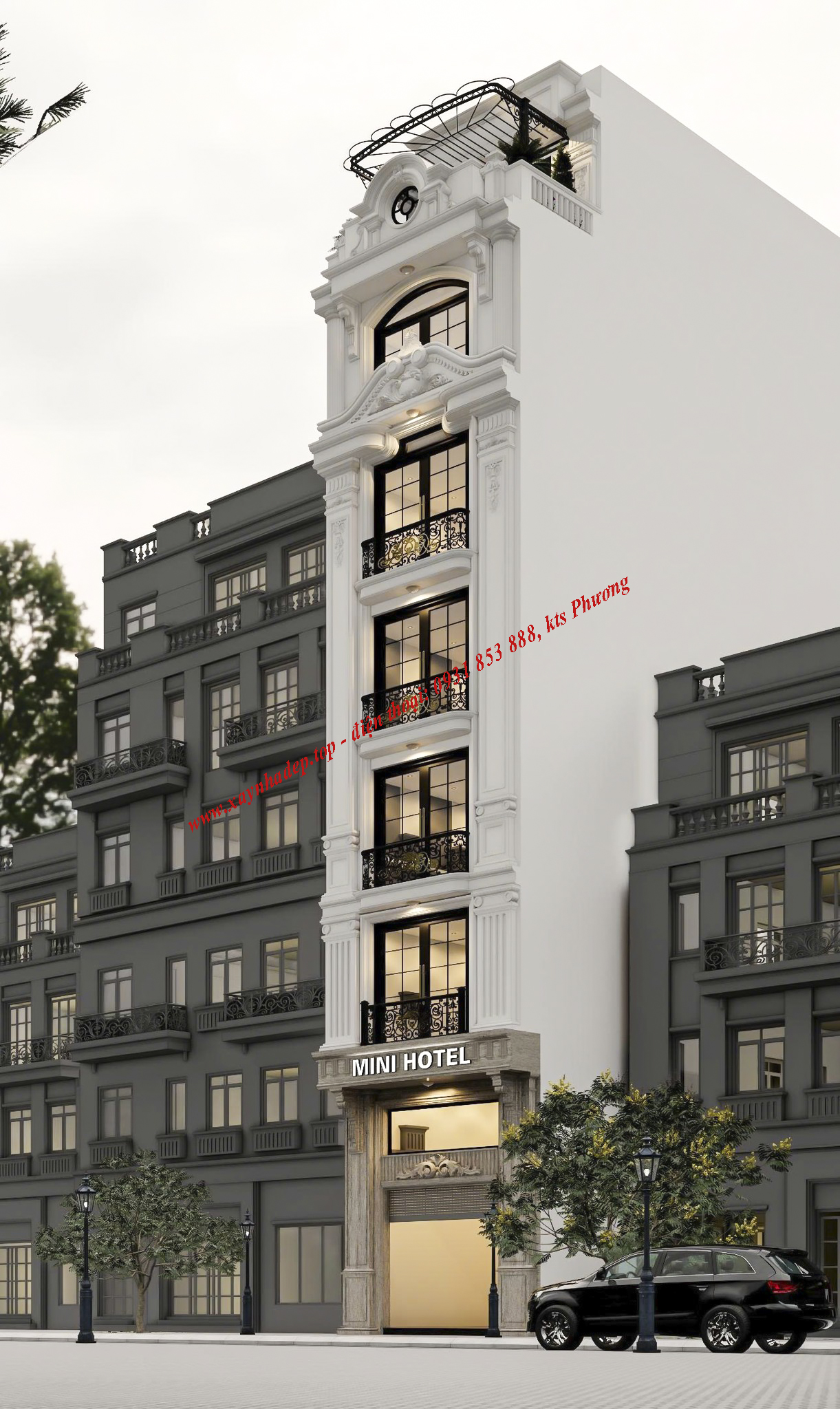MẪU THIẾT KẾ KHÁCH SẠN MINI 6 TẦNG TẠI THÀNH PHỐ HỒ CHÍ MINH