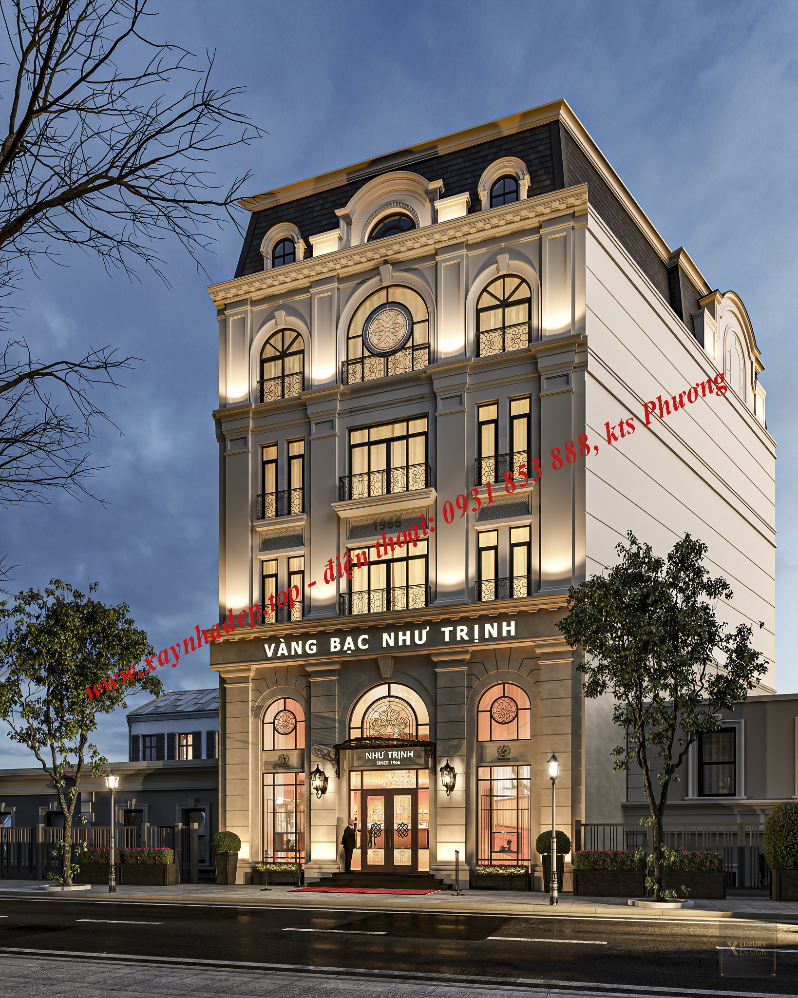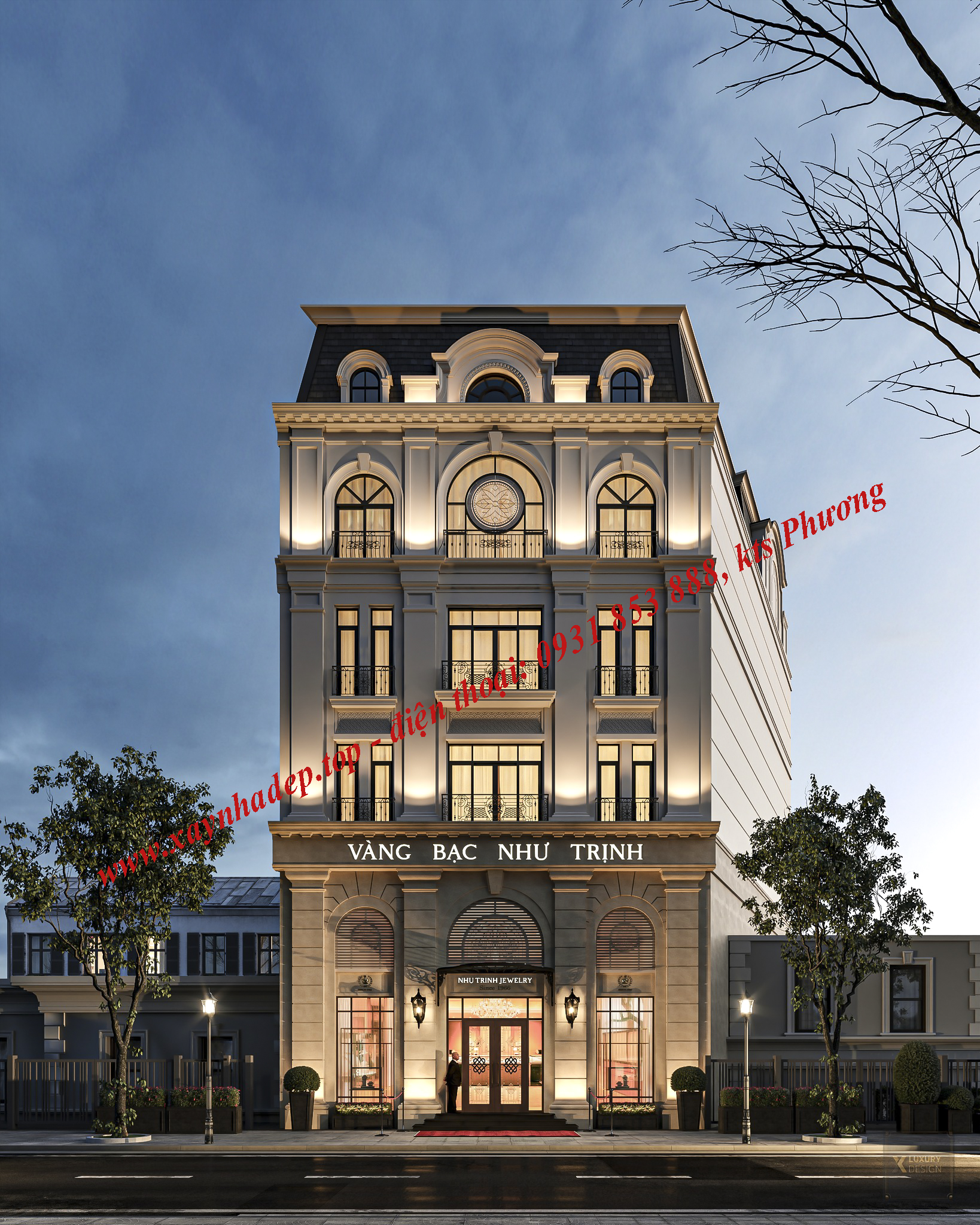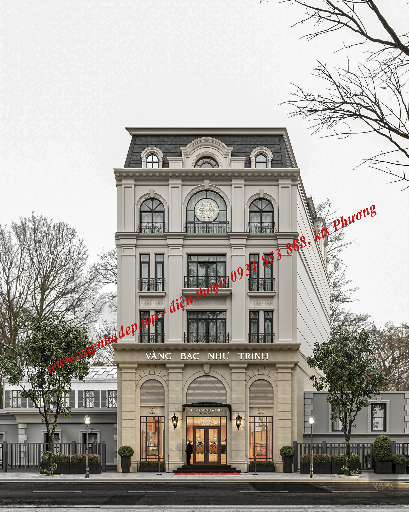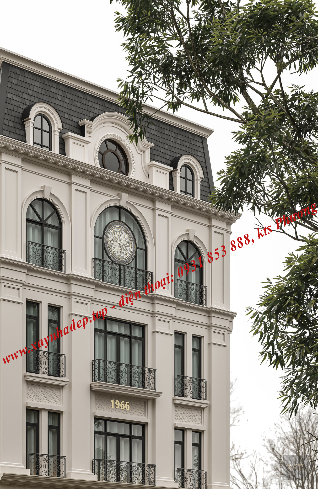 Công trình gây ấn tượng mạnh với mặt tiền tân cổ điển cân đối, sang trọng, lấy cảm hứng từ kiến trúc châu Âu: